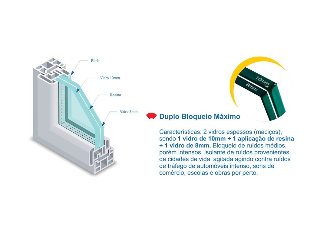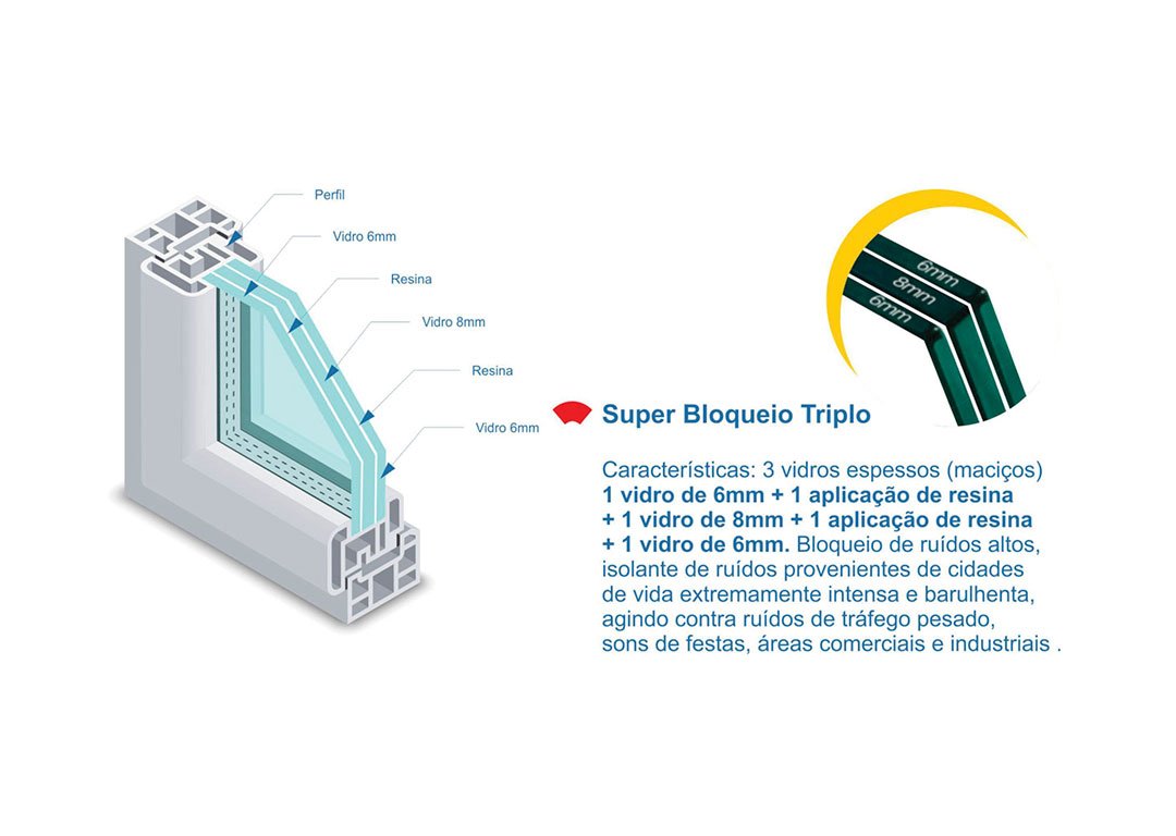 Saiba mais!Os materiais empregados na confecção de janelas e portas acústicas são especiais pois eles tem que suportar pesos consideráveis, pois são empregados muitos elementos e peças na sua composição.